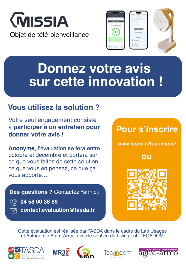 Via notre laboratoire d’usage (living lab) TECADOM, développé par le TASDA, l’association des Médecins Retraités de l’Isère (MR38) et l’université inter-âge du Dauphiné (UIAD)